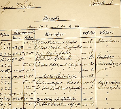 Verlinkt: Kopien der Besucherliste von Rudolph Hess während der Festungshaft in Landsberg am Lech 1924 aus dem Bayerischen Staatsarchiv München