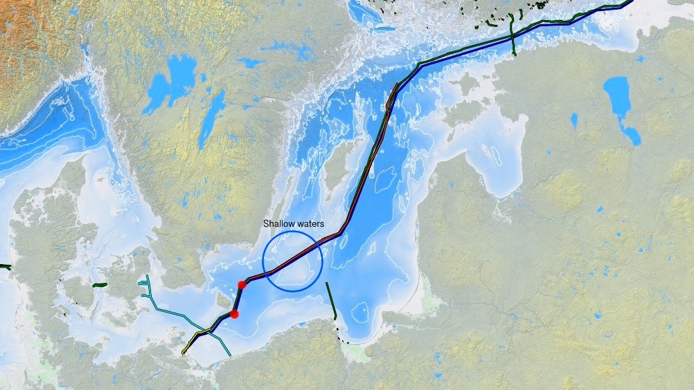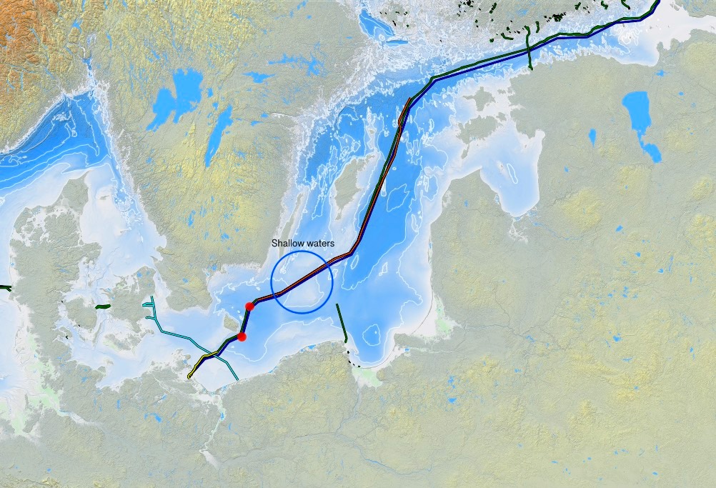 at two locations in the Baltic Sea where the water is relatively deep. Divers would have had a much easier time at several other, much shallower pipeline locations. Also puzzling is why one fourth bomb site appears to have been falsely placed with little to no effect.