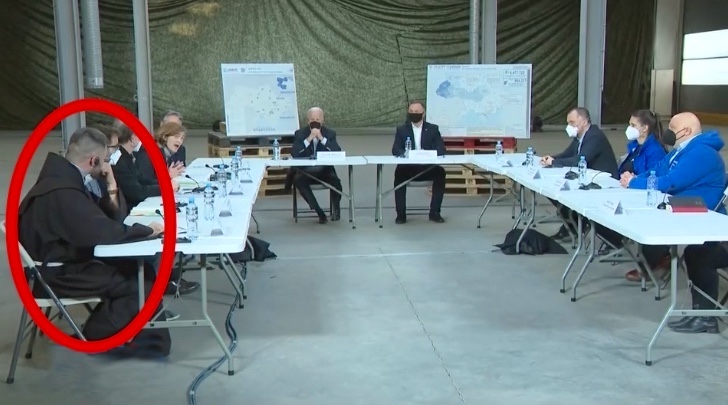 Interesting, too, is that US president Joe Biden, who was the main contact point for Ukraine during his 8 year vice-presidency under Obama, visits Poland almost twice a year nowadays, also in March 2022. It is not known whether he discussed the role of his son Hunter Biden in the Ukrainian gas giant Burisma, or if he met with Poland's former Prime Minister Kwasniewski, who sat on the same Burisma board next to Hunter Biden. What is known is that Joe Biden mingled with various Polish state officials during his stay at the end of March 2022. One of his get-togethers depict him sitting in a U-shaped discussion round with a gentleman dressed in Catholic monk clothes:
