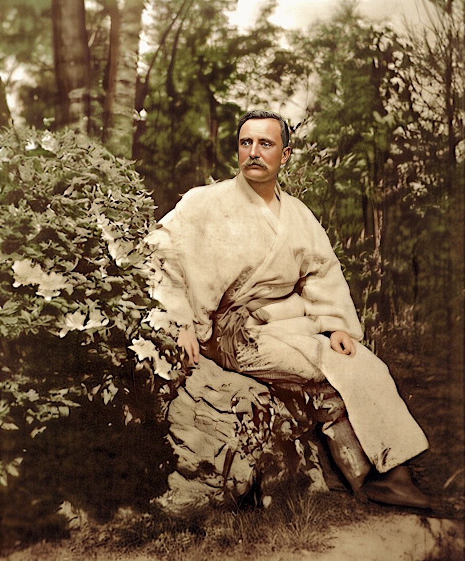 Karl Haushofer was a Bavarian career military officer (Hauptmann) and academic. In November 1908, he was dispatched by the German General Staff to Tokyo as a military attaché to study the Imperial Japanese Army and advise on artillery. Traveling with his wife Martha via India and Southeast Asia, he arrived in February 1909 and was received by Emperor Meiji, all while his young son Albrecht was left at home in ... Garmisch-Partenkirchen,